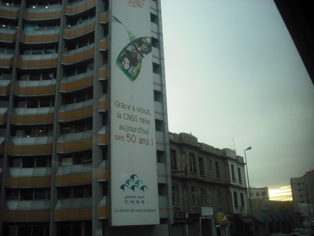 12:10、カサブランカで下車(Gare de Casa Voyageurs)、3時間10分の旅であった。駅前にさっそくスマ-テイ・ピュブを見る(広告主はケイタイ電話会社など)。