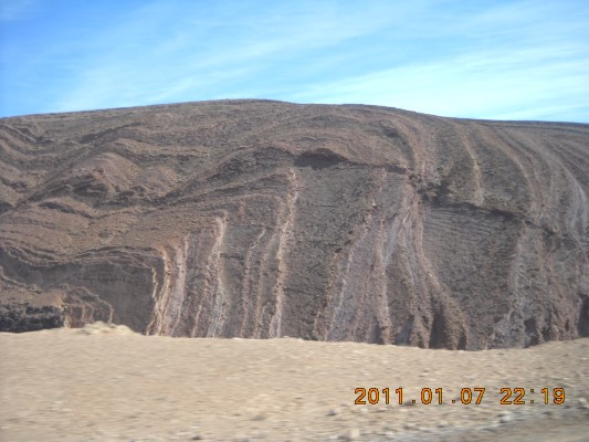 ついでながら、アイト・ベンハッドウ-への往復途中で、アトラス山脈が褶曲山脈であることを証明する大胆強烈な褶曲模様を見ることができた。